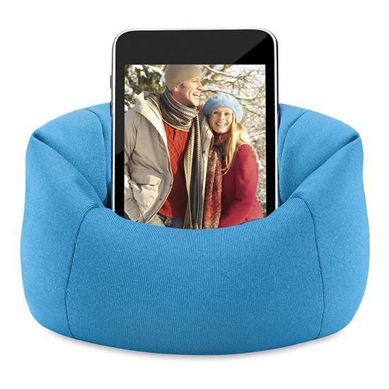 Suportul pentru telefon are aspectul unui fotoliu si este confectionat din poliester.